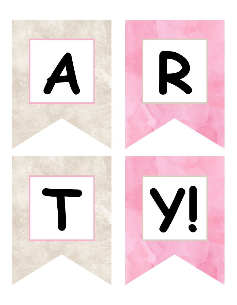 Tea Party Banner โ Stylish pink and beige party decorations to create a festive setting.